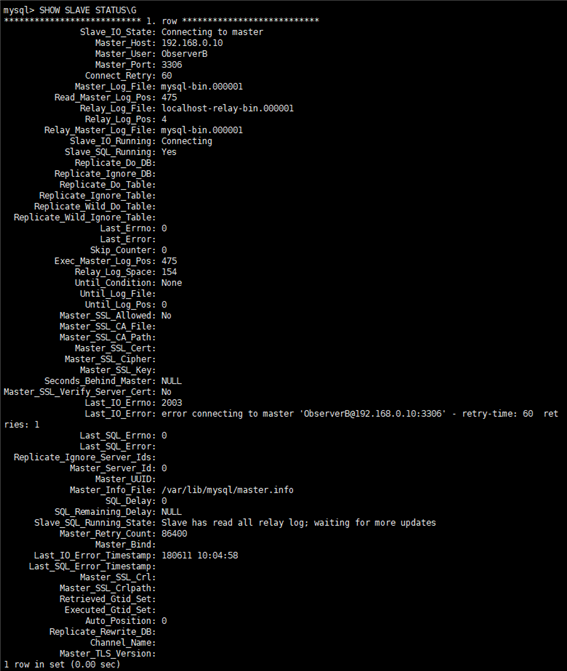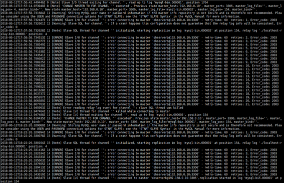 하다 보니 과정에서 Warning을 확인 하였고 Master Server에 Replication계정 접속이 안되는걸 다시 확인한다...