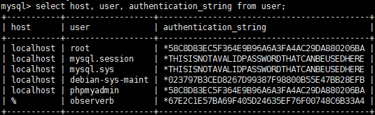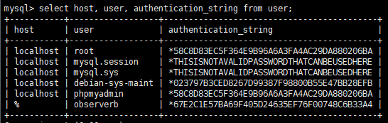 *.*은 DB.Table이고 %는 모든 ip 허용 권한을 준 observerb계정 생성